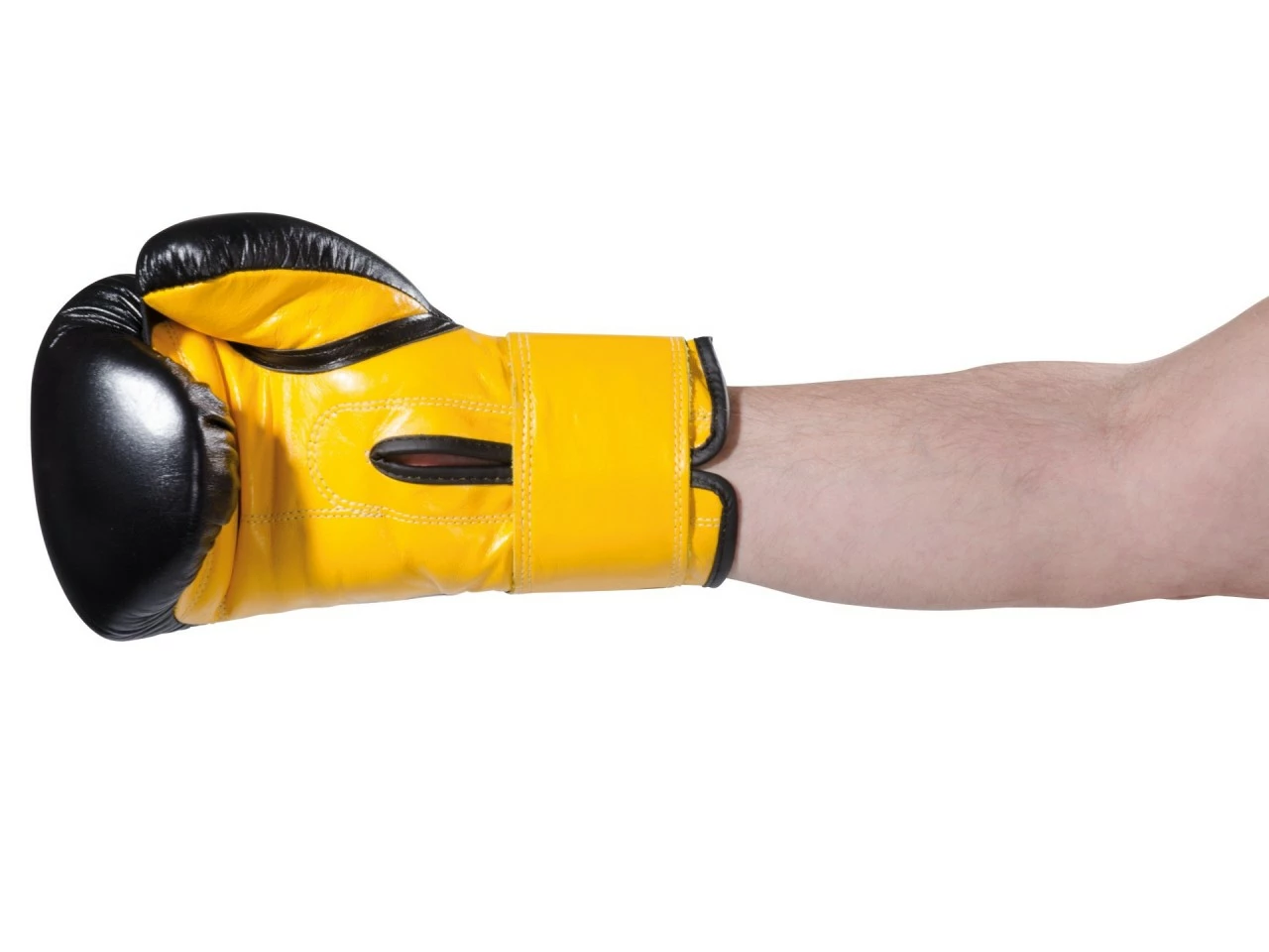 - Ein hochwertiger Vollkontakt-Boxhandschuhe Knocking aus echtem Leder.