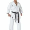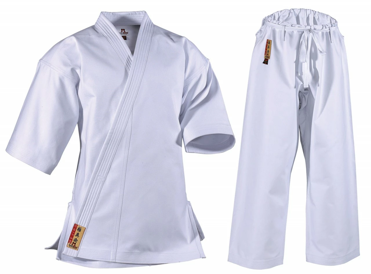 Ein im typisch japanischen Schnitt gehaltener Anzug für das Vollkontakt-Karate. Extra kurze Ärmel und gerader Hosenbeinschnitt aus 100% feinster Baumwolle in 12oz. Canvas Materail Qualität. Die Hose besitzt einen traditionellem Schnürbund.