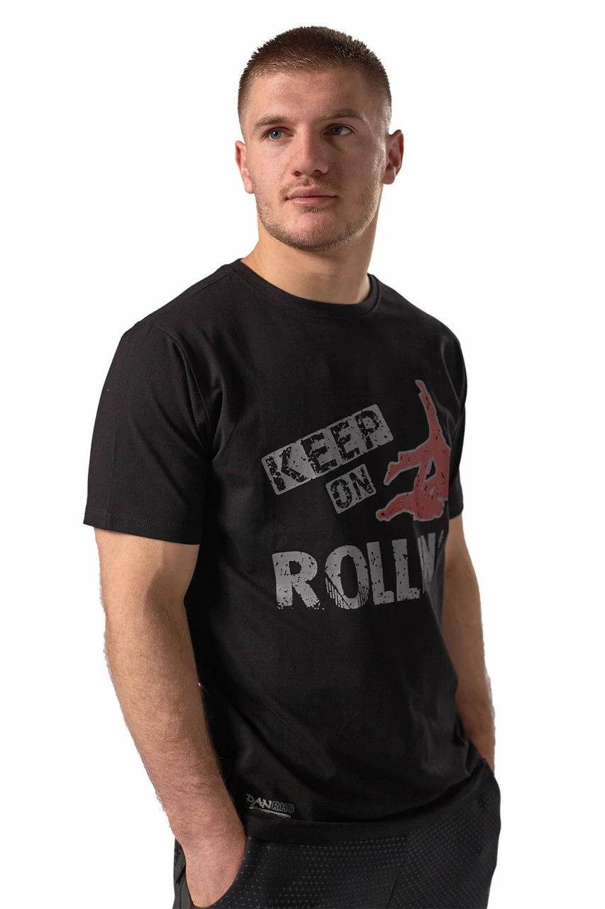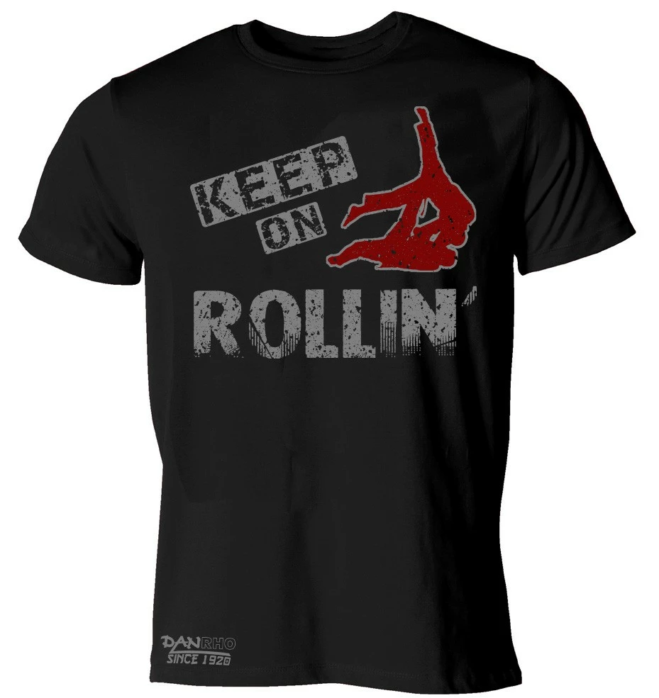 Figurbetontes DANRHO Shirt in Premiumqualität mit großem Druck auf der Brust „Keep on Rolling“.