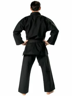 Idealer Kampfsportanzug für junge Martial Arts Kids. Die Jacke mit Klettverschluss am farbigen Revers lässt sich einfach überziehen. Die Hose sitzt dank dem elastischen Schnürbund. Die Enden der Ärmel und Hosenbeine sind farbig. Das DRACHENKRALLE Logo an der Jacke und am Gürtel ist ein Hingucker. Die Rückseite bietet Platz für eine individuelle Bedruckung. So macht das Kindertraining Spaß!