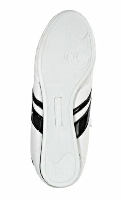 Der Schuh hat eine dünne, elastische Gummisohle, sowie eine hochgezogene Ferse und doppelt verriegelte Nähte. Ventilationslöcher seitlich sorgen für Belüftung. KWON Logo-Druck auf Seitenstreifen und Spann.