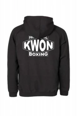 Hochwertiger Kapuzenpullover mit großem KWON PROFESSIONAL BOXING Druck auf dem Rücken und kleinem Brustdruck auf der Voderseite.