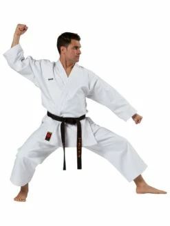 Der aufwendig produzierte Karateanzug für höchste Qualitätsansprüche eignet sich für Allgemeintraining, Kata, sowie Kumite. Das Material ist aus 100% gebleichte Baumwolle. Die Hose mit Elastikbund hat eine zusätzliche Schnürung.