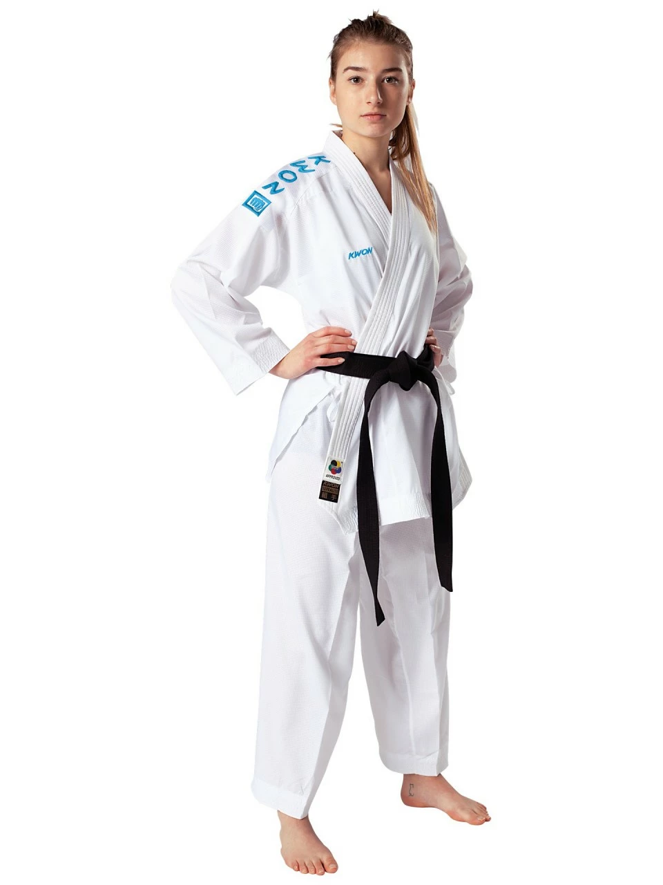 Der Kumite Karateanzug besteht aus 100% atmungsaktivem Mikrofaser (Polyester). Der leichte und angenehme Stoff mit ausgeprägter Struktur und die Mesheinsätze garantieren einen hohen Tragekomfort. Die Hose hat einen Elastikschnürrbund. Perfekter Schnitt, designed von Kumite Spezialisten.