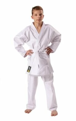 Unser Tipp für Einsteiger und fortgeschrittene Karateka. Der Karateanzug ist ein bewährter und sehr belastbarer Anzug aus strapazierfähigem 100% gebleichtem Baumwoll-Canvas. Die Hose mit Elastikbund hat eine zusätzliche Schnürung. Lieferung inklusive weißem Kampfsportgürtel. Der Anzug fällt groß aus!