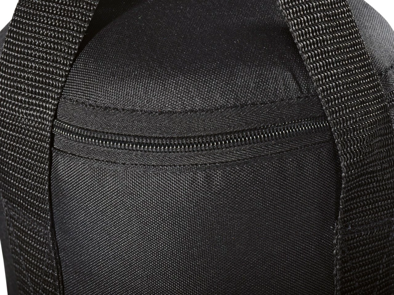 Das Außenmaterial ist aus strapazierfähigem Nylon. Der Kinderboxsack mit robuster Vierpunkt-Gurtaufhängung ist oben mit einem Reißverschluss ausgestattet und mit weichem Stoff prall gefüllt. Durch das geringe Eigengewicht von ca. 3,5 kg ist der Boxsack für kleine Kinder ungefährlich und verringert so die Verletzungsgefahr im Training.