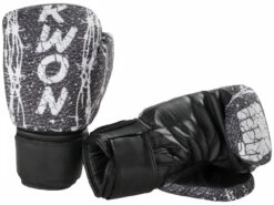 Die KWON Boxhandschuhe mit schräger Trefferfläche sind im Thaischnitt gehalten.