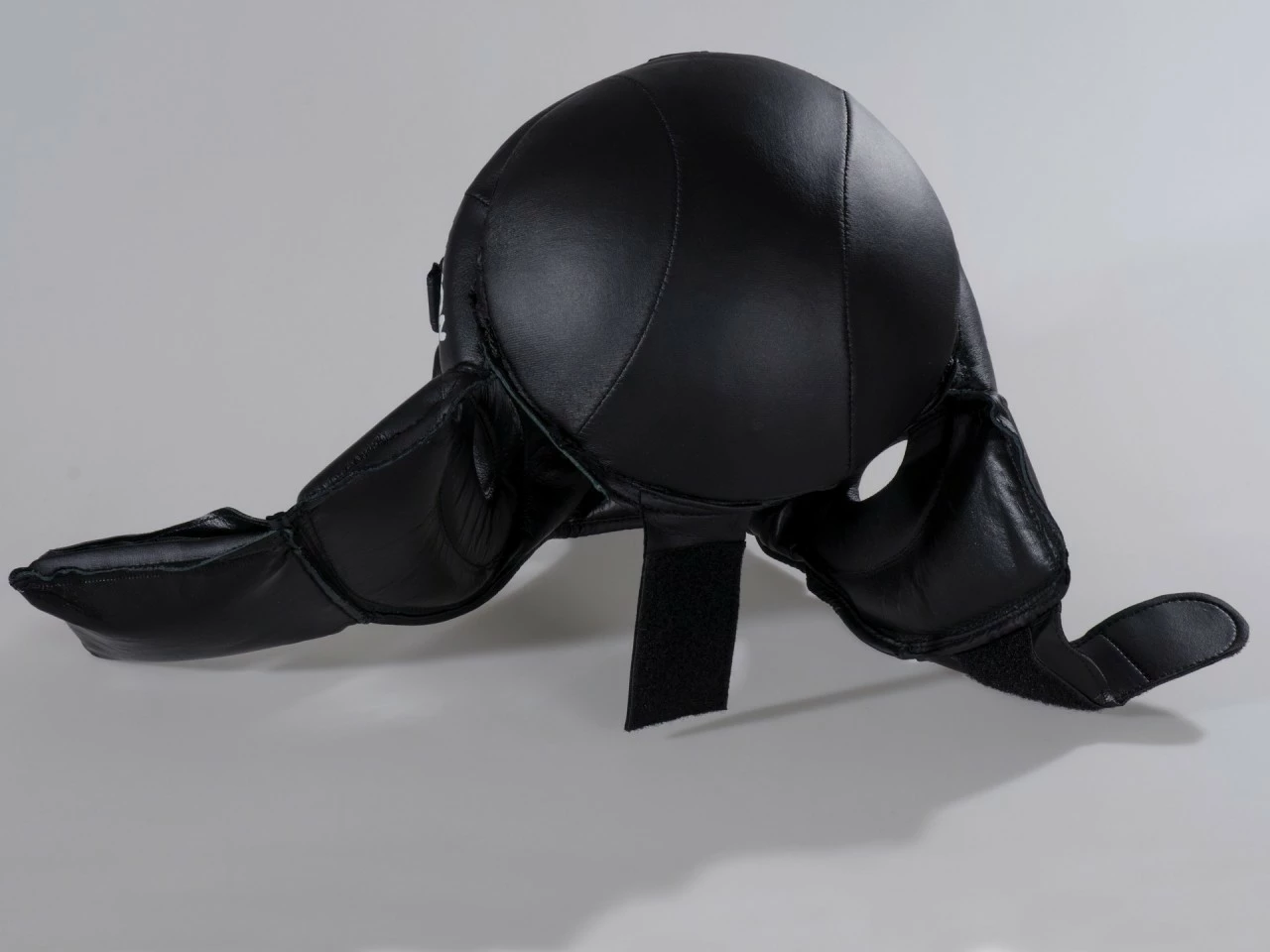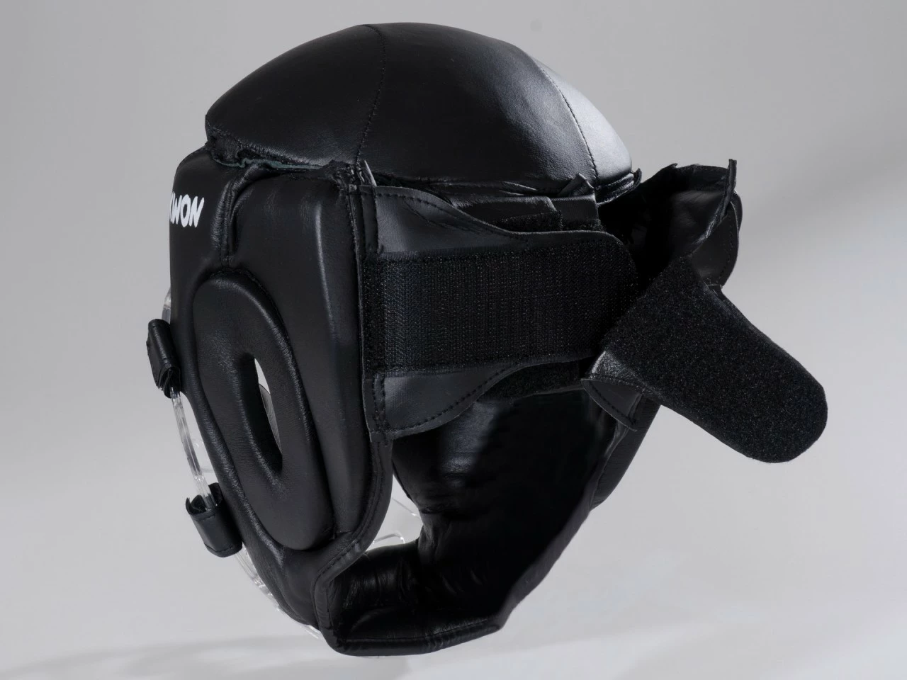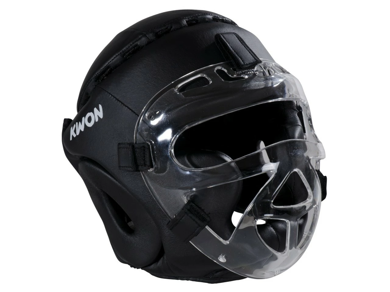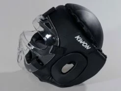Der Kopfschützer besitzt einen Schädeldecken- und Ohrenschutz. Eine Plastikschale mit Schaumstoffeinlage dient als Schutz für die Schädeldecke. Das Gesichtsgitter wird mit Klettverschlüssen befestigt.