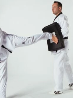 Das ca.800 Gramm leichte Schlagpolster mit straffer Polsterung kann durch die vorhandenen Unterarm- und Halteschlaufen variabel eingesetzt werden. Seine leicht gebogene Form bietet einen besseren Auftreffwinkel und somit ein schonenderes Training. Die strapazierfähige Oberfläche aus hochwertigen Kunstleder ist leicht zu reinigen und hält dank der seitlichen Ventilationslöcher auch harten Schlägen stand.