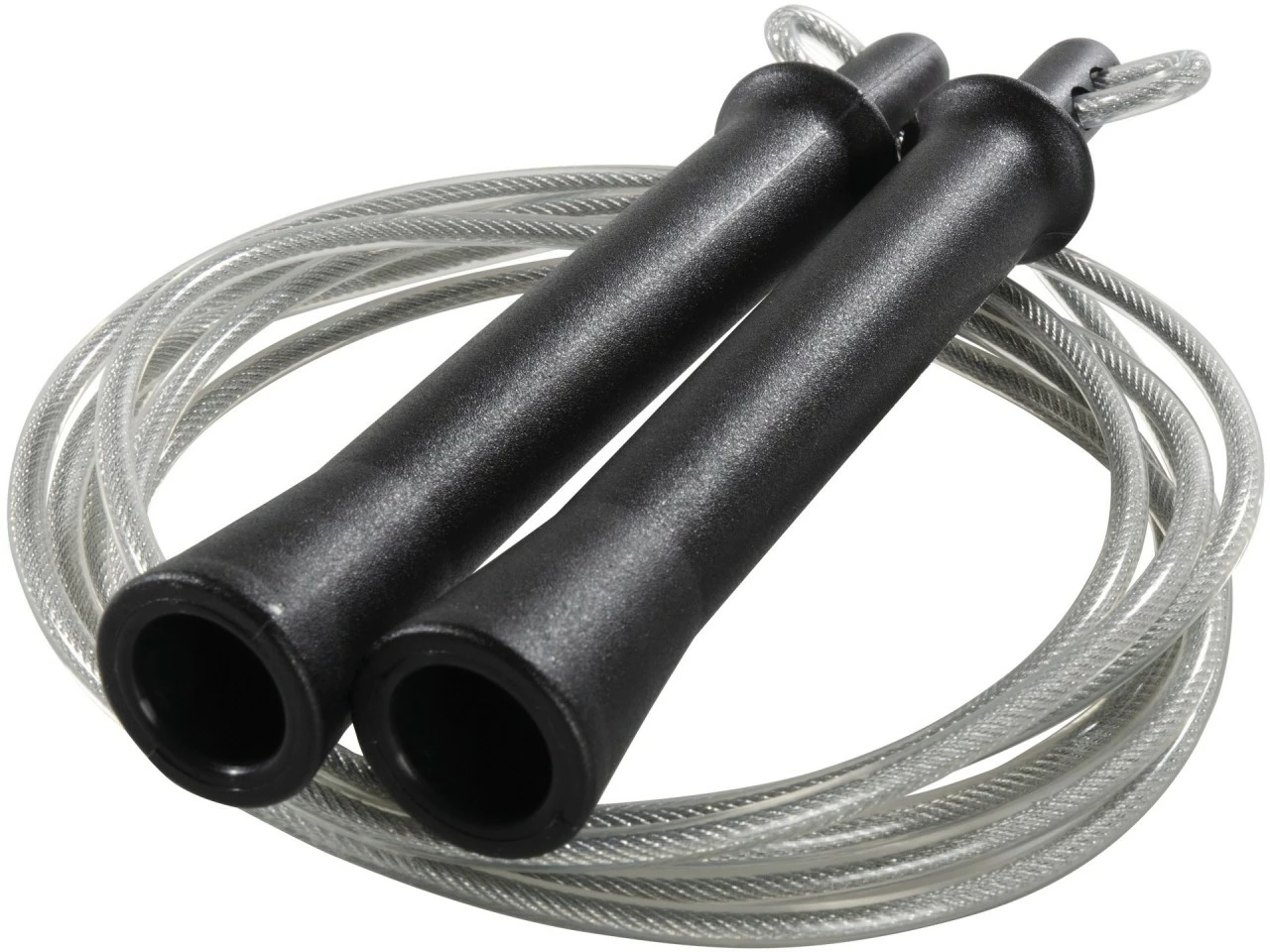 Das Springseil ist ein schnell drehendes Stahlseil mit PVC-Ummantelung. Die Doppelösen an den Kunsstoffgriffen ermöglichen einfaches und schnelles Ändern der Seillänge. Ideal für Ihr Ausdauertraining.