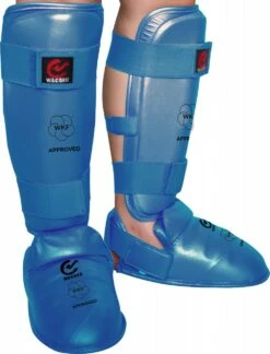 Die WKF Karate Schienbein-und Spannschützer sind aus PU Material gefertigt und sind von der WKF zugelassen. Die Klettverschlüsse können individuell angepasst werden und sorgen für guten Halt.
