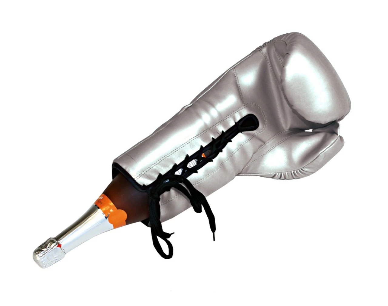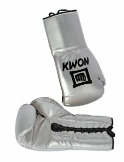 Zum Aufstellen, Aufhängen oder Befüllen. Riesiger Deko-Boxhandschuh im XXL Format zur Dekoration in silber.